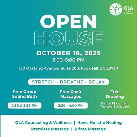 Join us for our Open House Saturday Oct 18, 2-5 pm! Meet our providers, sign up for a free chair massage & sound bath!